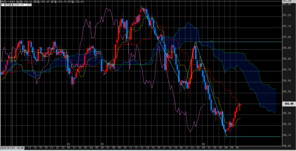 ドル円は、日本株高・米金利高・日本国債利回り上昇を背景にドル高・円安が進行し、年初特有のリスク選好と「日本売り」観測が重なった形である。新たな政策・指標材料というより、ポジション調整を伴うドル主導の動きと整理できる。一方で、介入警戒や金利上昇の持続性には不透明感も残る。