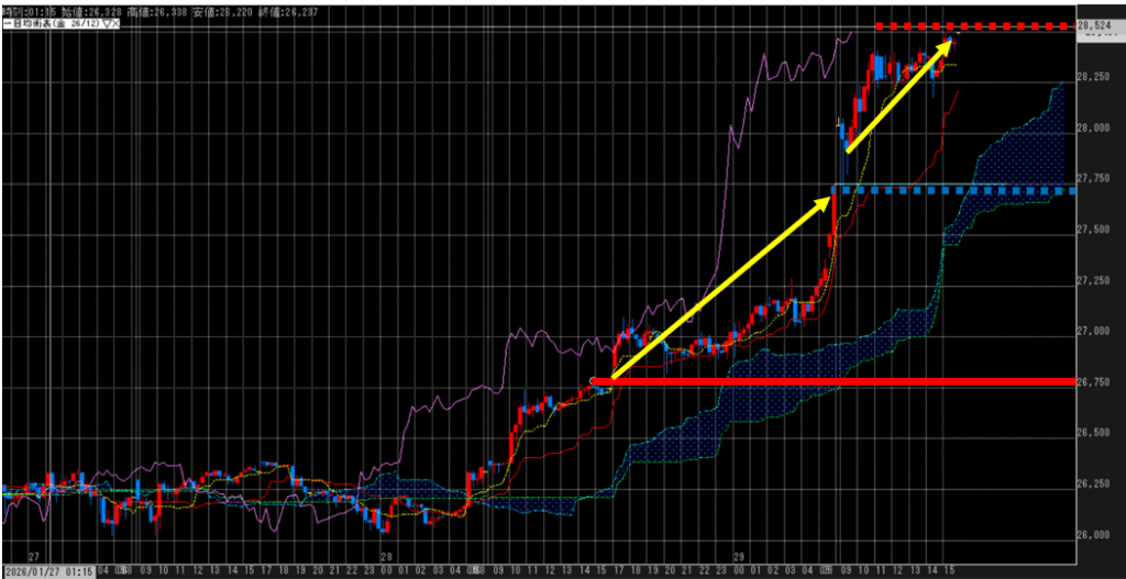 <2025/1/29(木) 17:00~の予測>調整売りを警戒するも、タイミングはわからず。リスク認識の上で買い進む。