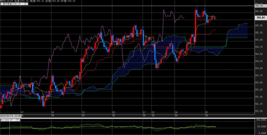 現状は本格的な下落というより押し目・調整局面の色合いが強い。ドル円は156円台急伸後のスピード調整、金も急騰後の利食いが主因で、基調そのものは大きく崩れていない。
