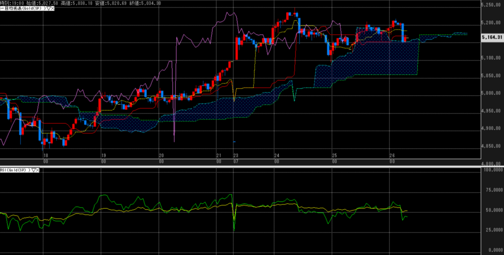 一方、金は下落してもトレンド転換ではなく、短期的な利食いによる調整の可能性が高い。基調は強く、押し目として意識されやすい展開。