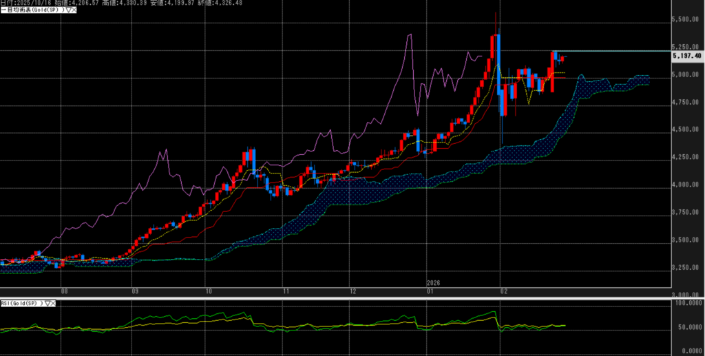 一方、スポットは実需や長期資金の影響が大きく、実質金利低下や株安といった基礎要因が支えとなりやすい。したがって、中期的な上昇トレンド自体は維持されている可能性が高い。ただし、協議が完全合意に至りリスクが大きく後退する場合は、調整が一段と深まるリスクも残る。