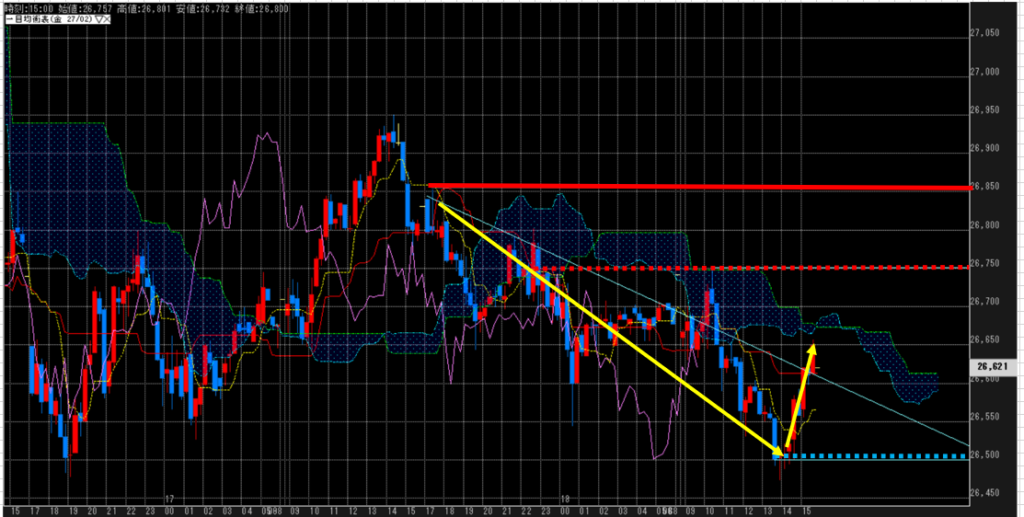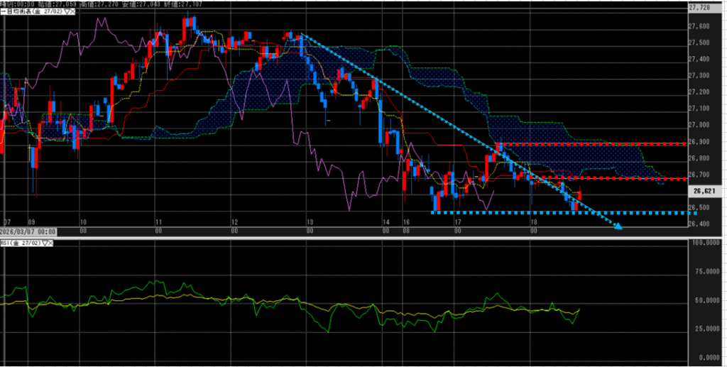 26,742円(▲72円)26,621円(▲121)26,800円~26,950円26,500円~26,600円