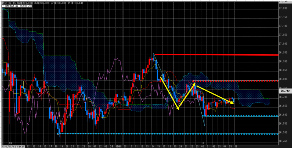 26,742円(▲72円)26,800円~26,950円26,500円~26,600円